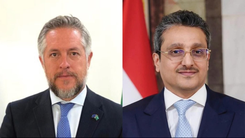 بحث وزير الثقافة والسياحة، مطيع دماج، اليوم الأربعاء، مع سفير الاتحاد الأوروبي لدى اليمن، باتريك سيمونيه، سبل تعزيز التعاون في المجالين الثقافي والسياحي، بما يسهم في صون الموروث التاريخي والحضاري، وتطوير القطاع السياحي، وتوسيع الفرص الاقتصادية في اليمن.