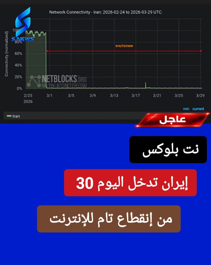 أفادت منظمة نت بلوكس بأن انقطاع الإنترنت في إيران دخل يومه الثلاثين على التوالي، في ظل استمرار القيود المفروضة على الاتصال الخارجي.